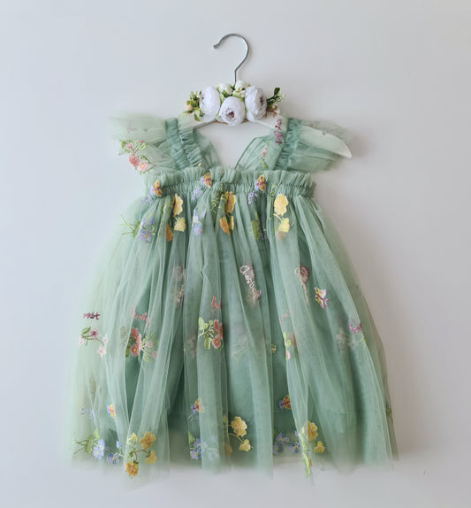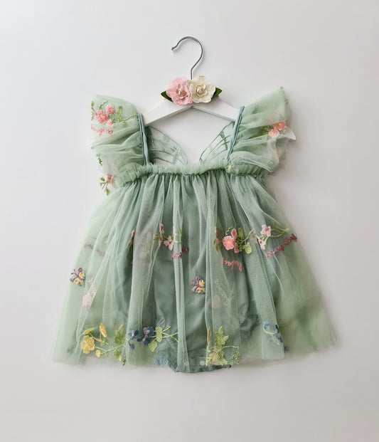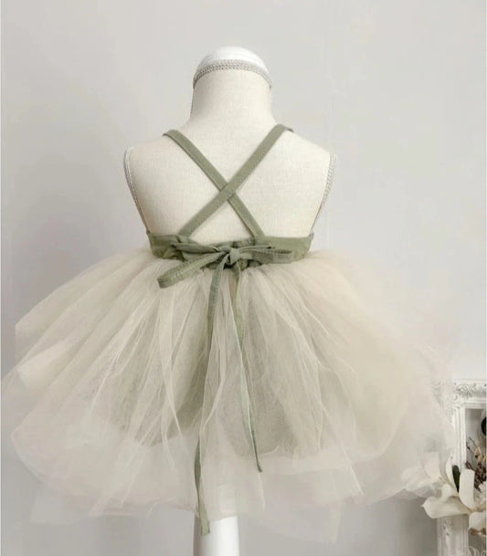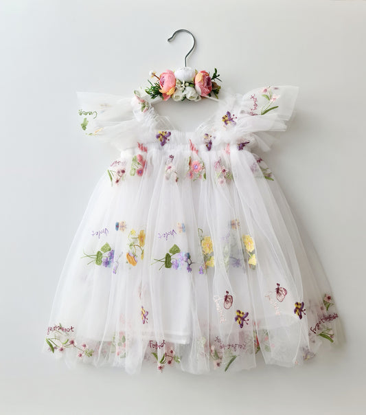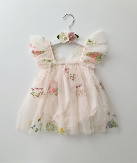 Garden Fairy 1st Birthday Dress & Headband Beige
