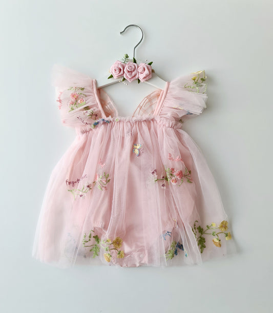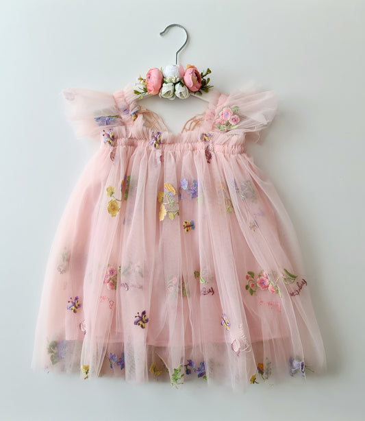 Garden Fairy 1st Birthday Dress & Headband Pink